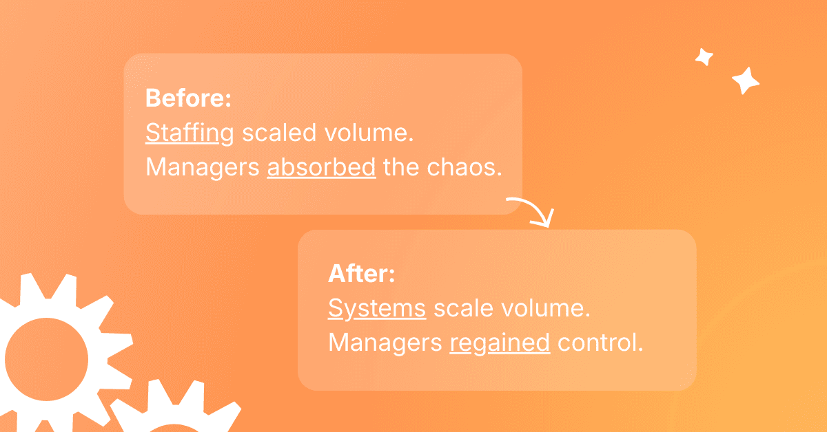 By shifting work from people to process, leadership eliminated constant onboarding, retraining, scheduling, and coverage stress. Changes became easy. The volume stopped feeling heavy.